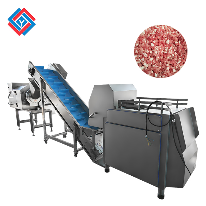 切丁階段:切丁機根據(jù)需求將肉塊切割成方丁、絲、條或片。